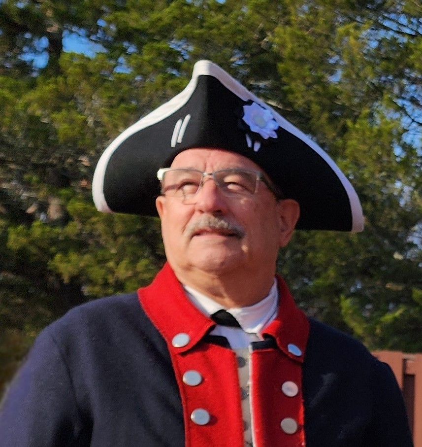 Ron joined the SAR in the George Washington Chapter in western Pennsylvania in 2006 where he served as President (2 terms), Treasurer and Registrar and a District Deputy in the Pennsylvania Society (PASSAR). He and his wife of 51 years both grew up in western PA, and after 47 years, Ron retired from American Airlines. In 2023 they moved to Williamsburg because of their love of 18th century history. Ron and his wife, Jane have a son and he, his wife and son live in Eagle River, AK. Ron is a volunteer docent at the American Revolution Museum at Yorktown since 2025 and serves on the British artillery crew at the Colonial National Historic Park in Yorktown as well as being the Williamsburg Chapter Color Guard Commander.